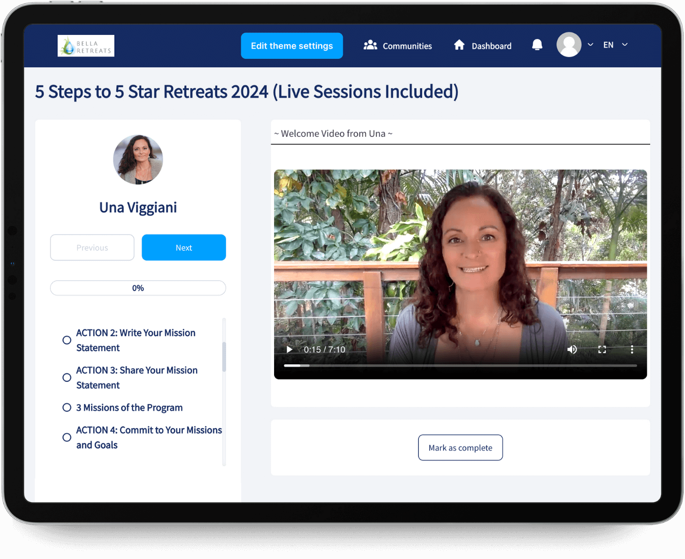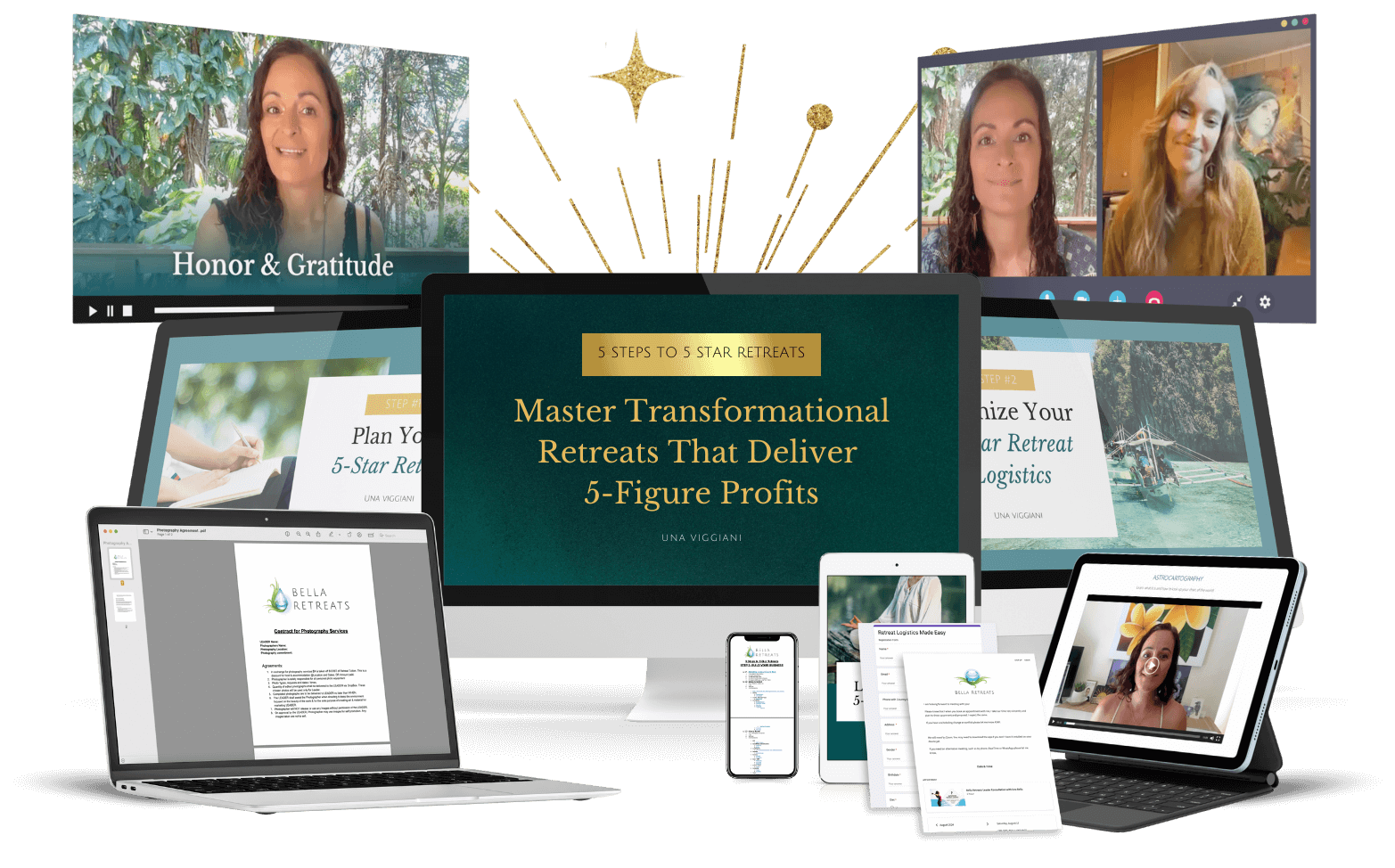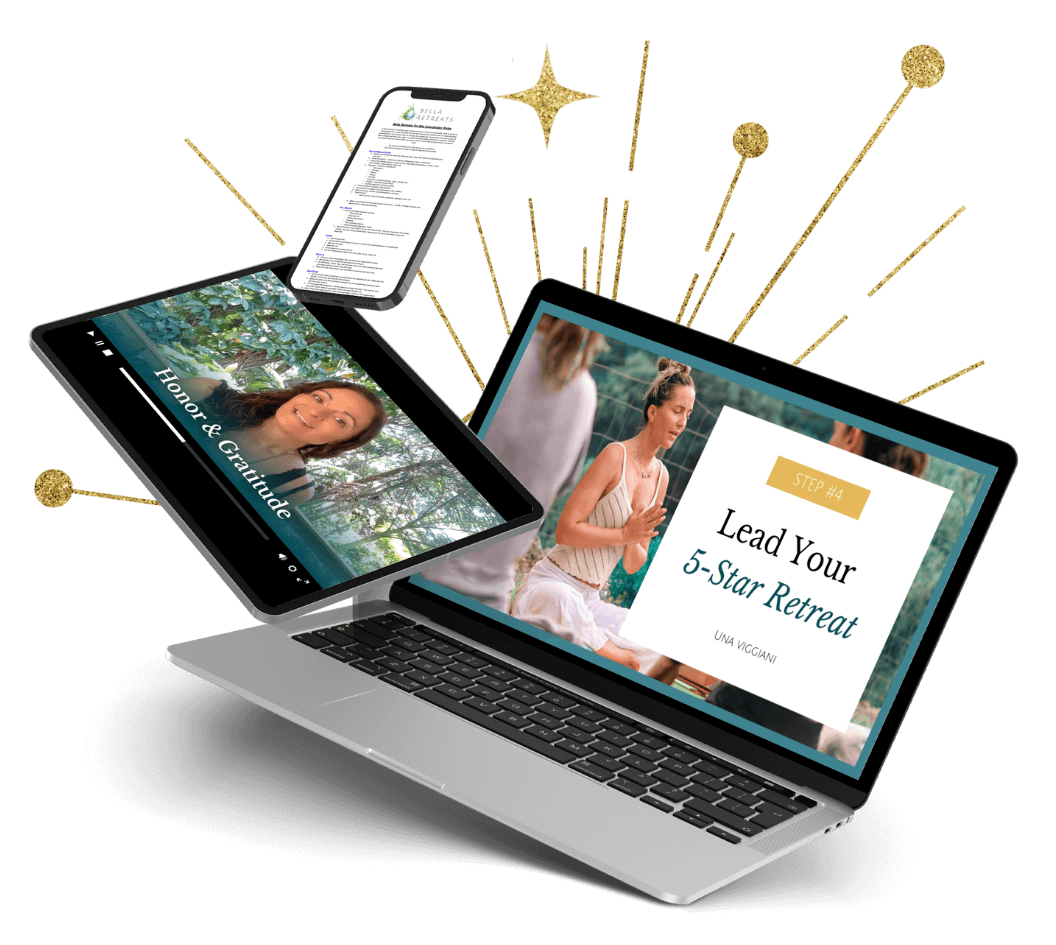 Unlock the secrets to creating and leading successful, transformative retreats that stand out in the global market. Our comprehensive program, designed by renowned retreat expert Una, will guide you through every step needed to plan, launch, and profit from your dream retreat.