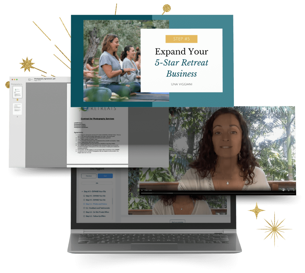 I wholeheartedly recommend the "5 Steps to 5-Star Retreats" course to anyone and everyone who is thinking about jumping into the world of retreat planning. Una offers a wealth of information and guidance that will give you the confidence to go out and 'make it happen!"